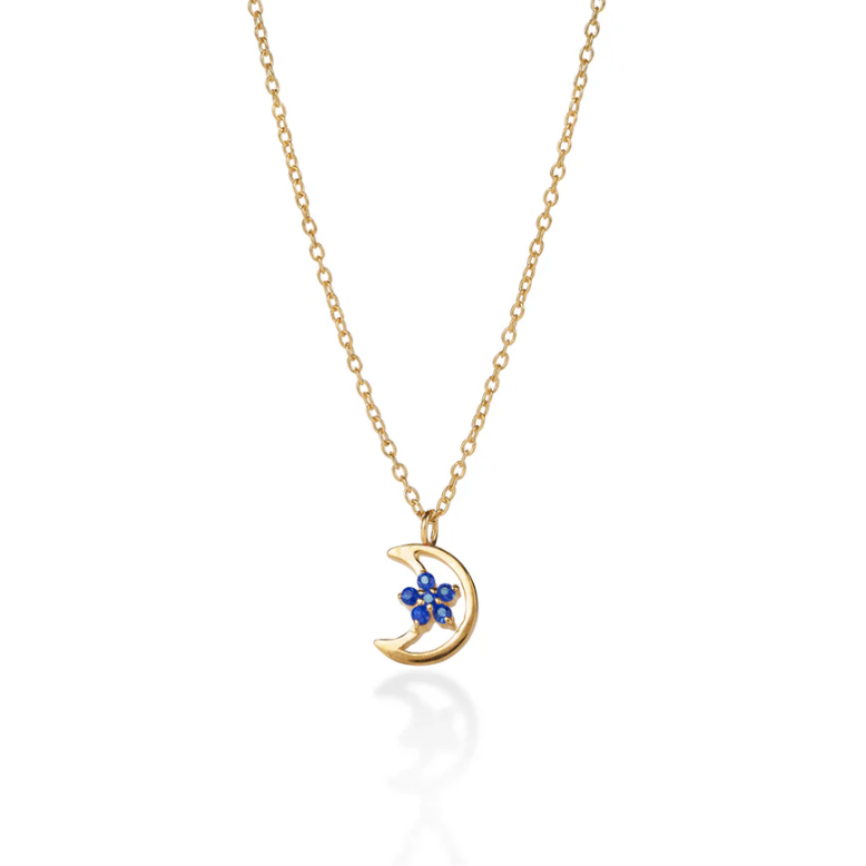 Der blaue Mond, lädt Sie garantiert zum Träumen ein. Der blaue Saphir macht aus dieser Kette in Sterling Silber 24 Karat vergoldet ein absolutes Must Have!